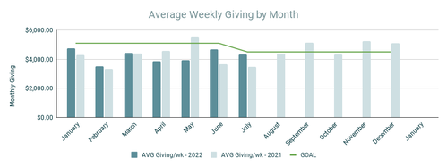 Even with those cuts, we will not keep up with expenses at our current rate. We are averaging around $4,200/week in giving, and for those of you who faithfully commit to sharing your resources, we can't thank you enough for your partnership. That being said, we must gather $4,500/week in order to support our expected expenses by the end of the year, not to mention having money to innovate, grow, and keep our mission moving forward.